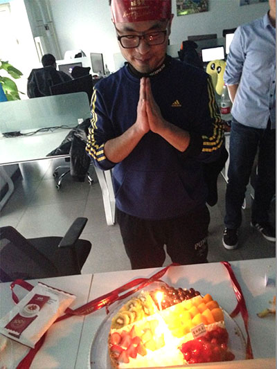 接下來“傳統(tǒng)生日會”照例為12月份過生日的同事點燃蠟燭(本月為兩位天坦伙伴),唱起祝福的生日歌,分享香甜可口的蛋糕,頒發(fā)“功夫熊貓”,這可是真正的功夫熊貓,在集齊24式功夫熊貓的同事,可以換到房子的鑰匙,這也是“壽星”最大的幸運,同時也是為了激勵天坦人勇往拼搏、直線進(jìn)取設(shè)置的最大獎項。