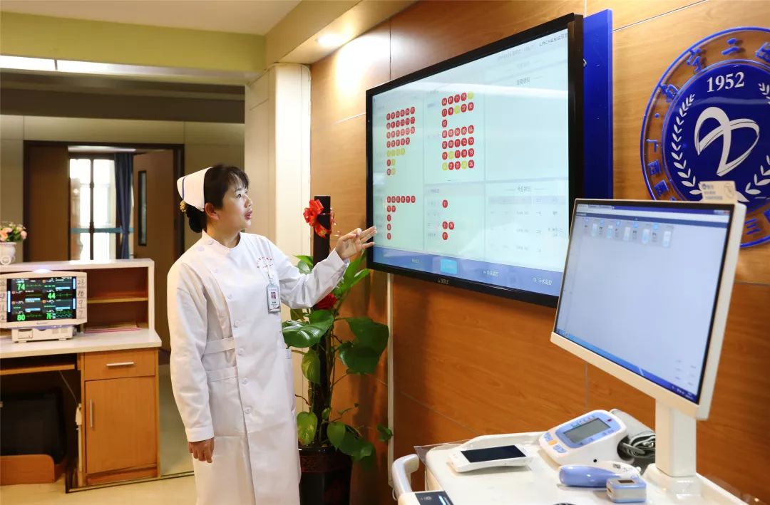 護(hù)士站的智慧交互大屏成為整個(gè)病區(qū)的信息中心,院內(nèi)數(shù)據(jù)互聯(lián)互通,每位患者的重要信息都能被及時(shí)關(guān)注到。